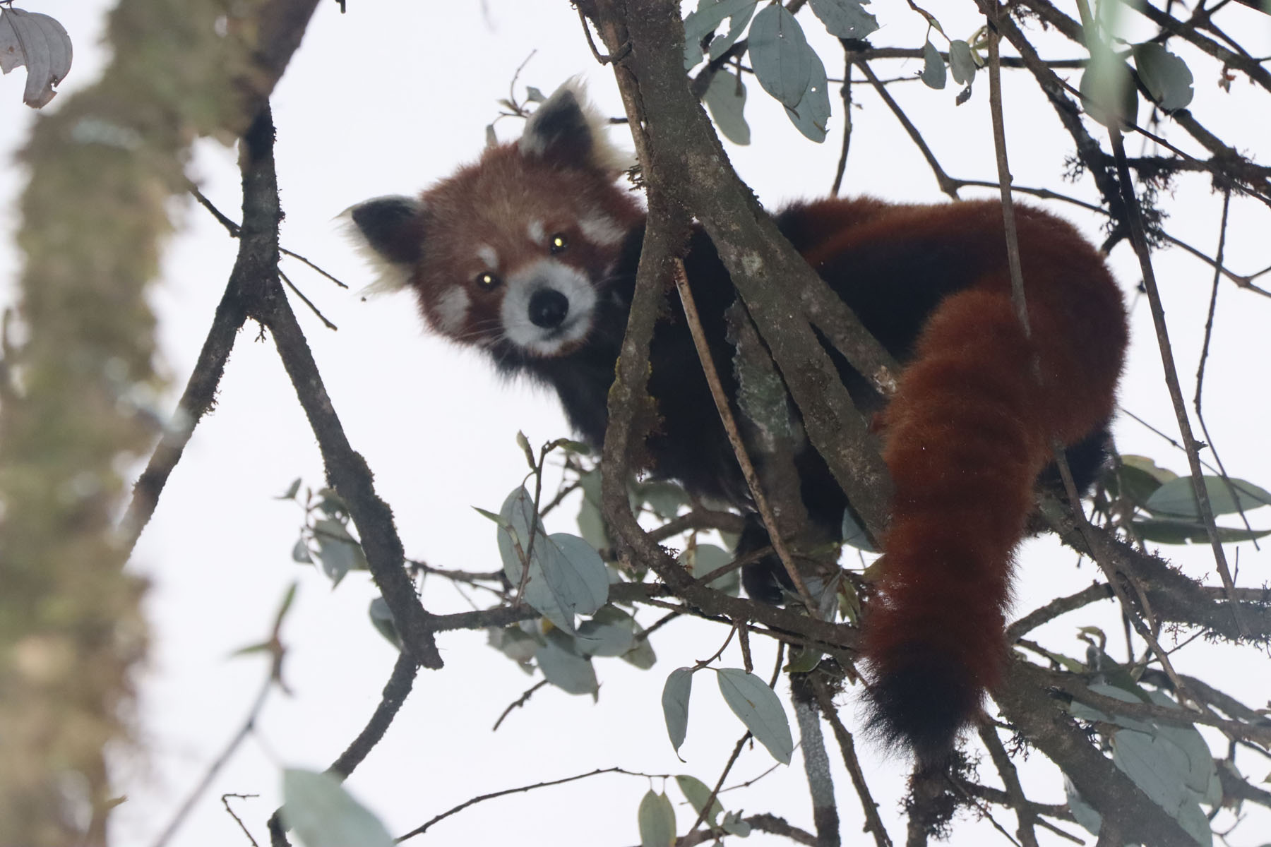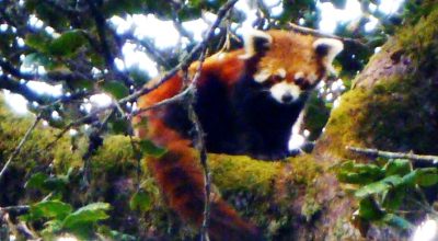फुङ्लिङ । समुद्र सतहदेखि तीन हजार मिटर उचाइमा अवस्थित ताप्लेजुङको फुङ्लिङ नगरपालिका-११ फावाखोलाको हर्कटे क्षेत्रमा रहेको रेडपाण्डा (हाब्रे) । रातो पाण्डा १० देखि २५ डिग्री सेल्सियस तापक्रम भएको र वार्षिकरूपमा कमै मात्र तापक्रम घटबढ हुने १ हजार ८०० देखि ४ हजार ८०० मिटर उचाइका क्षेत्रहरूमा पाइने गर्छ । यो खासगरी गुराँस र बाँस प्रशस्त भएको समशितोष्ण पतझड र कोणधारी जङ्गल क्षेत्रहरूमा पाइने गरिएको छ । तस्बिर : दिलकुमार लिम्बू/रासस