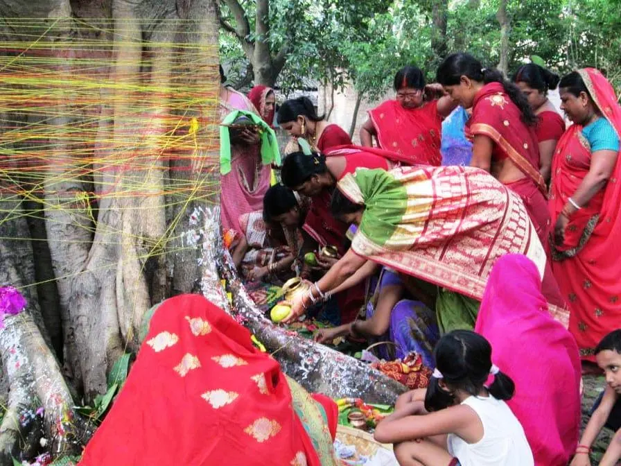 पति र पत्नीले पूजा गरिरहँदा पत्नीको भाइ छाता ओढाएर साक्षीको रुपमा उभिन्छन् । महिला पुरोहितले पर्वको मन्त्र उच्चारण गरी वरको जरामा पूजा गर्छन् । अंकुरी (पानीमा भिजाएर उमारिएको चना, मुंग र चामल) काँक्रो, केरा, स्याउ, अङ्गुर, आँप, लिची र नरिवल प्रसादको रुपमा वरको जरामा चढाएर सिन्दूरले रगाउँछन् । प्रसाद चढाइसकेपछि बर्तालुले पतिलाई उभिन लगाएर वरको रुखमा सात फेरो पहेँलो र रातो धागोले बेर्छन् ।