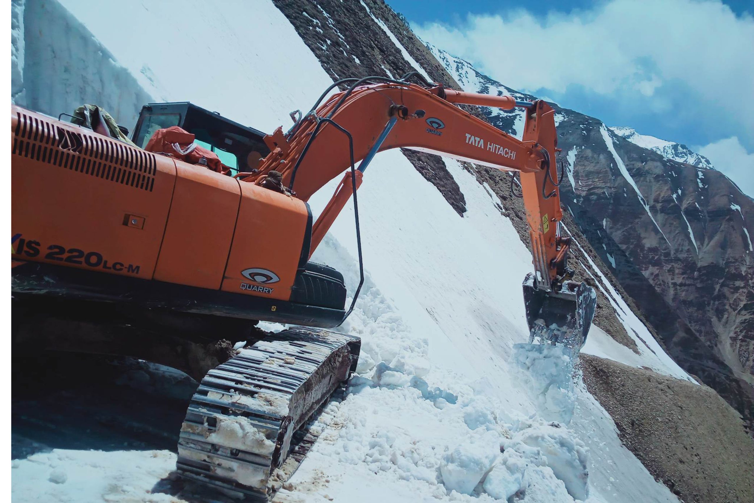 सिमकोट । हुम्लाको नाम्खा गाउँपालिका-५ स्थित नारा लेकमा पाँच महिनादेखि जमेको हिउँ-पहिरो पन्छाएपछिको सडकखण्ड । तस्बिर : दाने बोहरा/रासस प्रकाशित मिति : ११ जेष्ठ २०८०, बिहिबार ३ : ४३ बजे