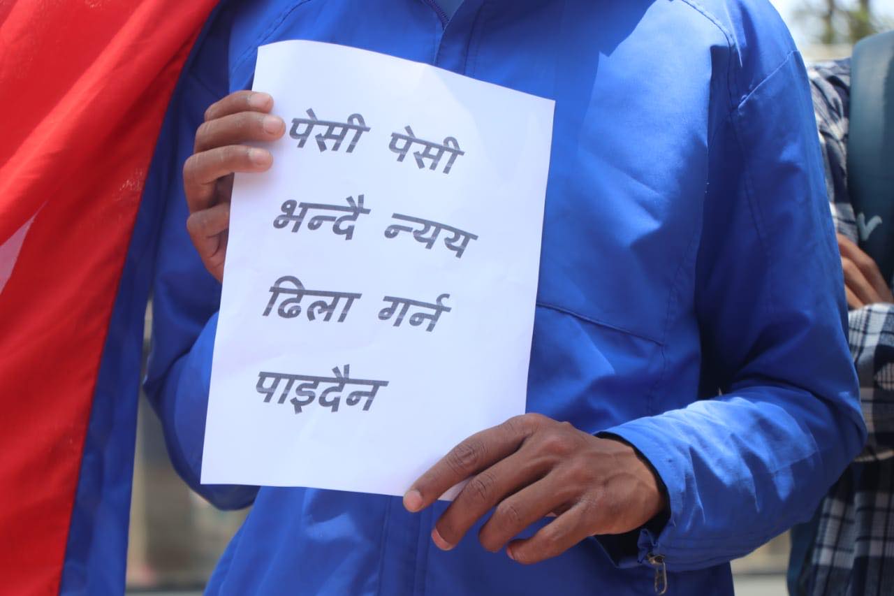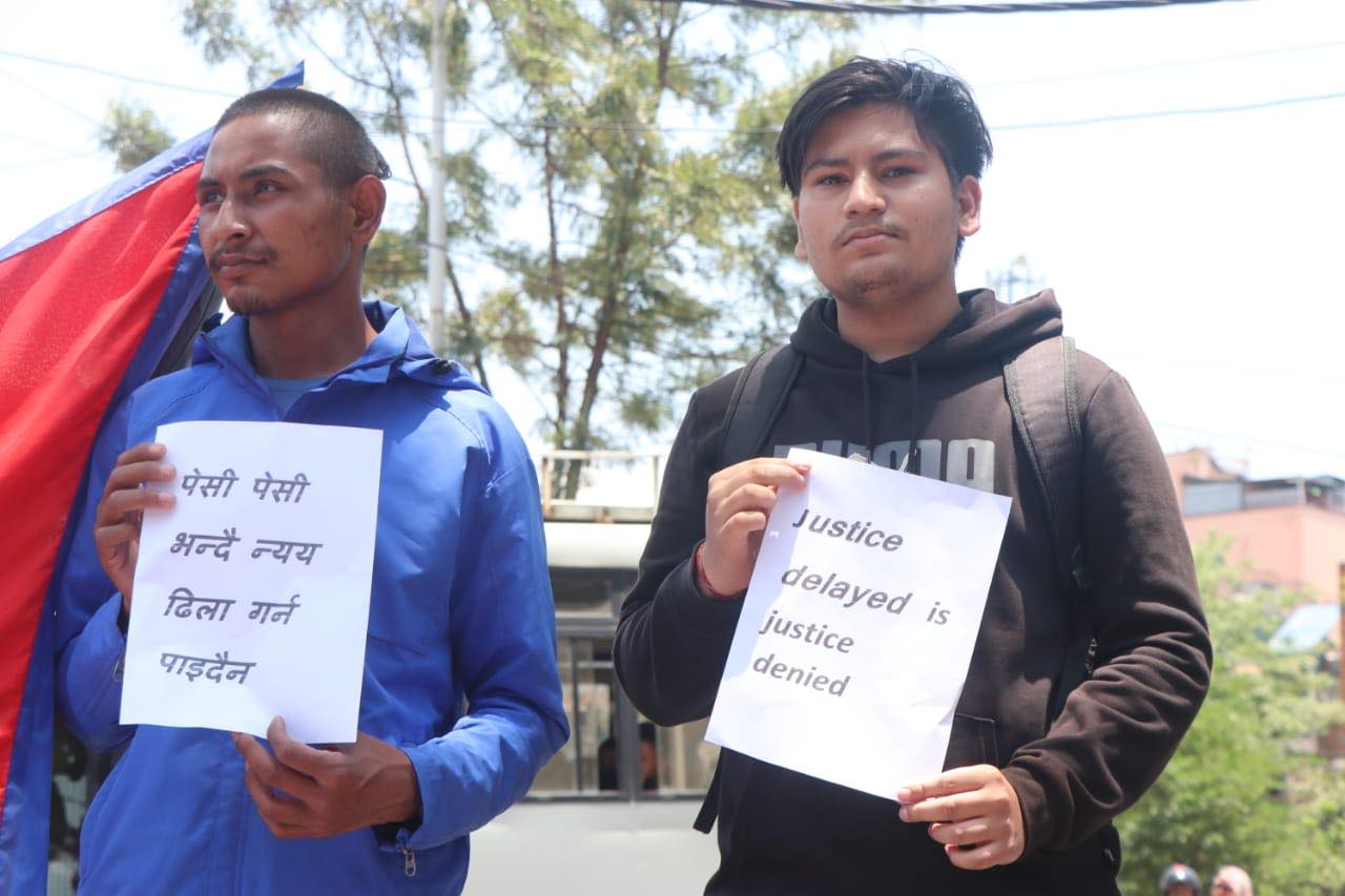 अदालतमा विचाराधीन मुद्दाको किनारा चाँडो लगाउनुपर्ने उनीहरुको माग छ । लगातार पेसी सारिएपछि युवाहरु सडकमा उत्रिएका हुन् ।