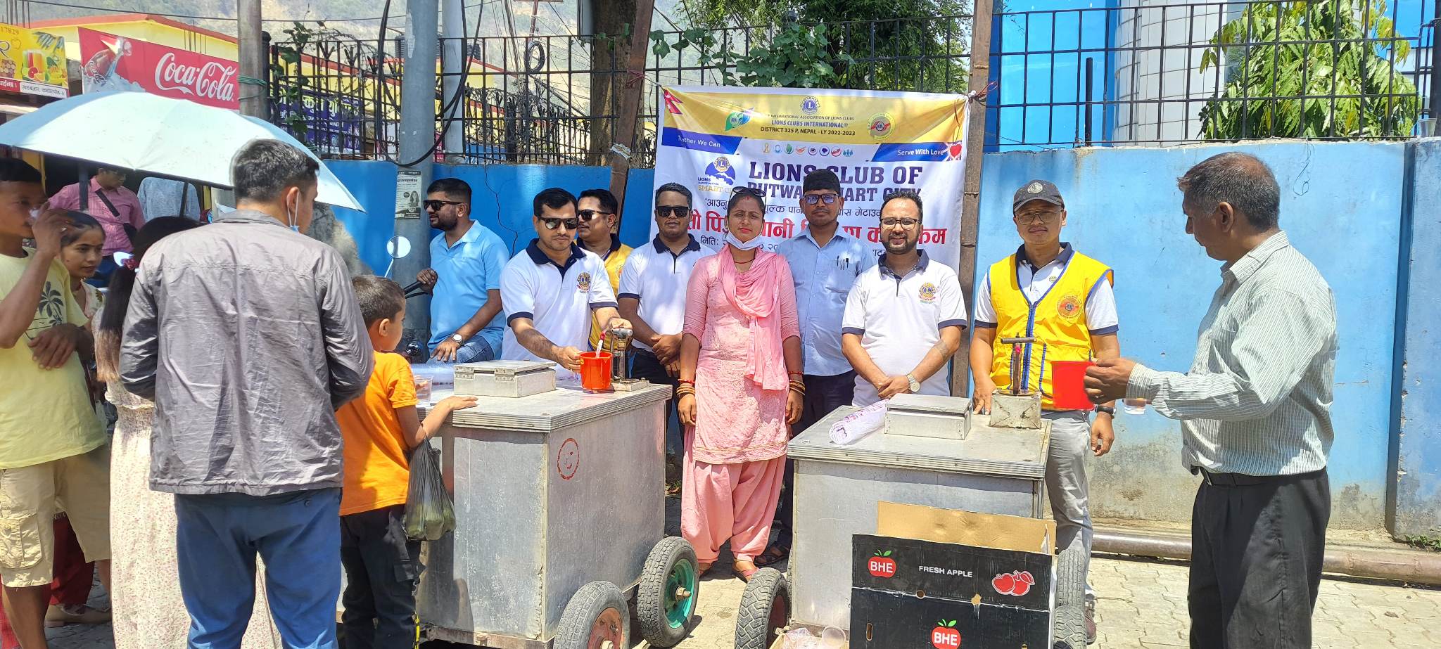 लायन्स क्लब अफ बुटवल स्मार्ट सिटीद्वारा नि:शुल्क पानी वितरण