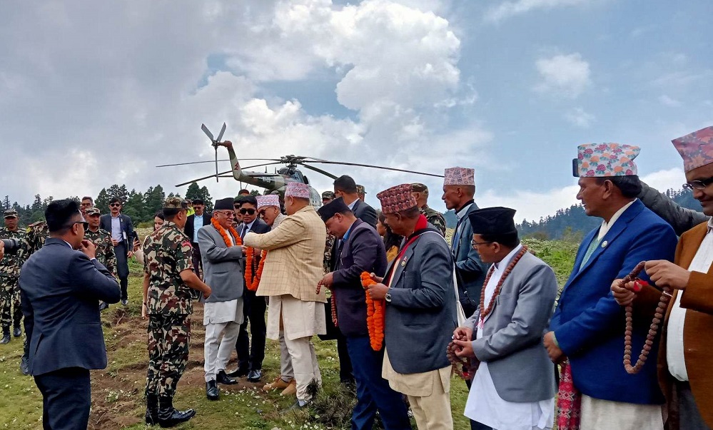 खप्तड । प्रधानमन्त्री पुष्पकमल दाहाल ‘प्रचण्ड’ खप्तड आइपुगेका छन् । उनी सुर्खेतको वीरेन्द्रनगरबाट नेपाली सेनाको हेलिकप्टरमा आइपुगेका हुन् ।