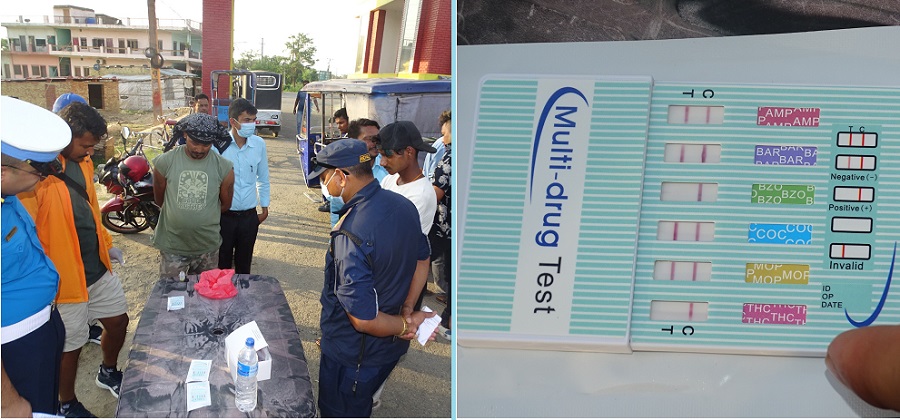 सिमावर्ती क्षेत्रमा खुला रुपमा पाइने लागुऔषधको सेवन गरी सवारी चलाउदा ज्यान नै जोखिममा हुने गरेको भन्दै सडक सुरक्षा अभियान अन्तर्गत जिल्ला ट्राफिक प्रहरी कार्यालय, इलाका प्रहरी कार्यालय बेलहिया र लागुऔषध नियन्त्रण ब्युरोको सहकार्यकामा चालकहरुले लागु औषध सेवन ९लापसे०गरे नगरेको परिक्षण गरिएको हो ।