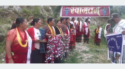 स्याङ्जा । मखमलको चोली, छिटको गुन्यूँ, पटुकी, घलेक, टिकिस, पछ्यौरी, खुर्पेटोसहितको परम्परागत पोसाकमा चिटिक्क सजिएर पाहुनाको स्वागत गर्न लस्करै उभिन्छन् सादीखोलाका मगर समुदायका युवती । उनीहरूलाई साथ दिन्छन् भोटो, स्टकोट, कछाड, पेटी, भाङ्ग्रा, टोपी र खुर्पेटोमा सजिएका पुरुषहरूले ।