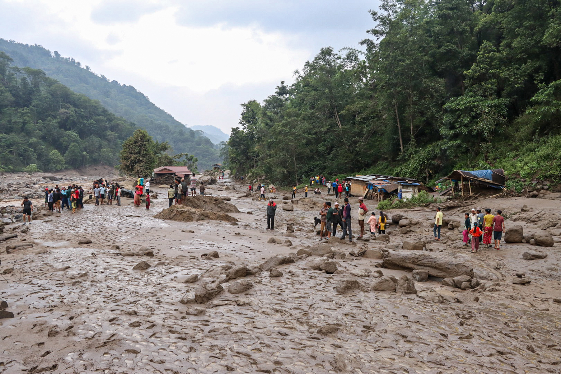 खाँदबारी । सङ्खुवासभाको चैनपुर र पाँचखपन नगरपालिकाको सिमाना भई बग्ने हेवा खोलामा गएराति आएको बाढीले जोखिममा परेको बस्ती । तस्बिर : सुजन बज्राचार्य/रासस