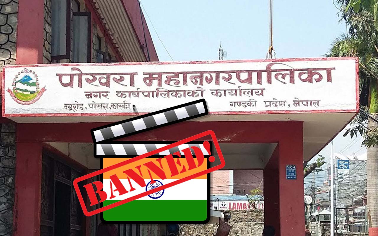पोखरा महानगरपालिकाले एक परिपत्र जारी गर्दै सोमवारबाट हिन्दी सिनेमा प्रदर्शनमा प्रतिबन्ध लगाएको हो । ‘दक्षिण भारतीय चलचित्र (फिल्म) ‘आदिपुरुष’मा समावेश गरिएको जानकी भारतीय छोरी हुन भन्ने शब्द नसच्चिएसम्म पोखरा महानगरपालिका क्षेत्र भित्रका चलचित्र घरमा अन्य कुनै पनि भारतीय फिल्म प्रसारण गर्न रोक लगाईएको ब्योहोरा जानकारी गराईन्छ’ नगर प्रमुख धनराज आचार्यले भनेका छन ।