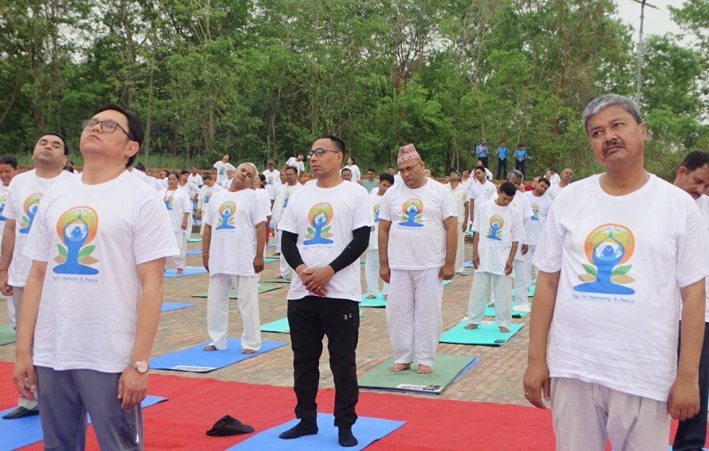 लुम्बिनी । बिश्व योग दिवसको अवसरमा बुद्धजन्मस्थल लुम्बिनीमा गरिएको योग कार्यक्रम  भएको छ ।