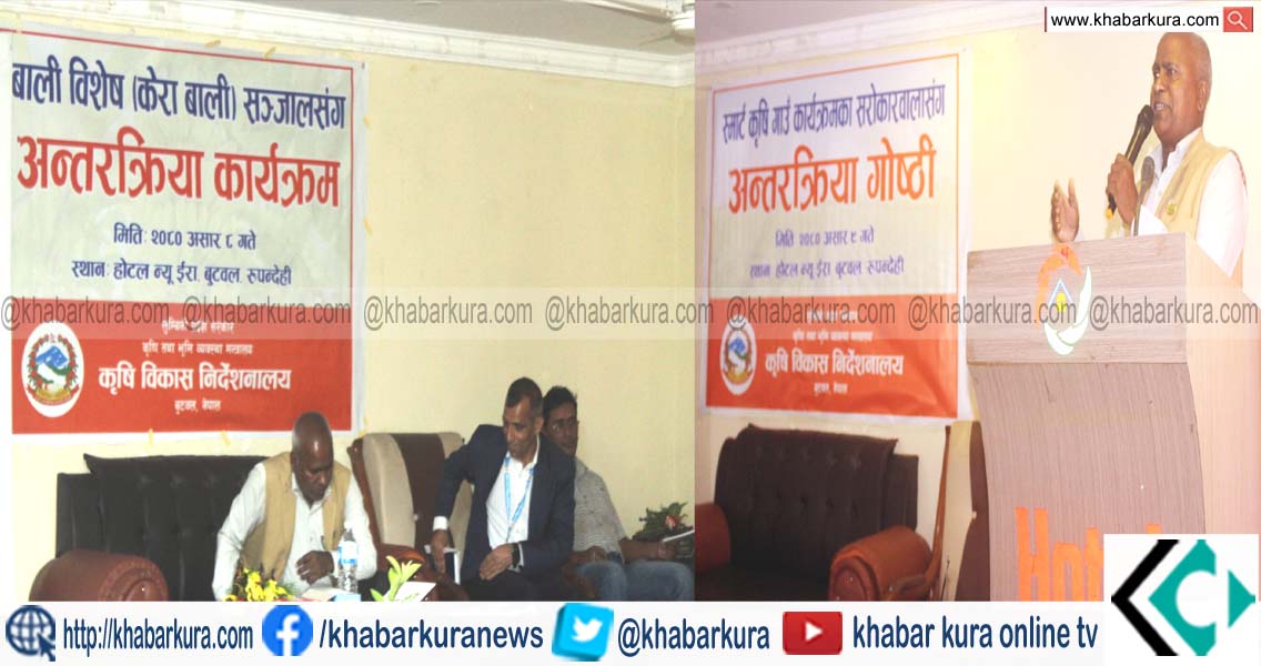 निर्देशनालयले दुई दिन लगातार एकै ठाउँमा अन्तरक्रिया र गोष्ठी गरेको छ । बुटवलको न्यू इरा होटलमा असार ८ गते बालि विशेष (केरा बाली) सञ्जाल गठन तथा किसान संग अन्तरक्रिया कार्यक्रम गरेको छ भने असार ९ गते सोही होटलमै निर्देशनालयको आयोजनामा ‘स्मार्ट कृषि गाउँ कार्यक्रममा सरोकारवालासंगको अन्तरक्रिया’ गरिएको छ । लुम्बिनी प्रदेशका विभिन्न जिल्लाबाट केरा खेतीमा लागेका किसान तथा सञ्जालका सदस्यहरुको सहभागीता रहेको भनिएपनि वर्षा लागेर धान रोप्ने तयारीमा रहेका किसानहरु उपस्थित भएको विषय आफैमा शंकास्पद रहेको छ ।