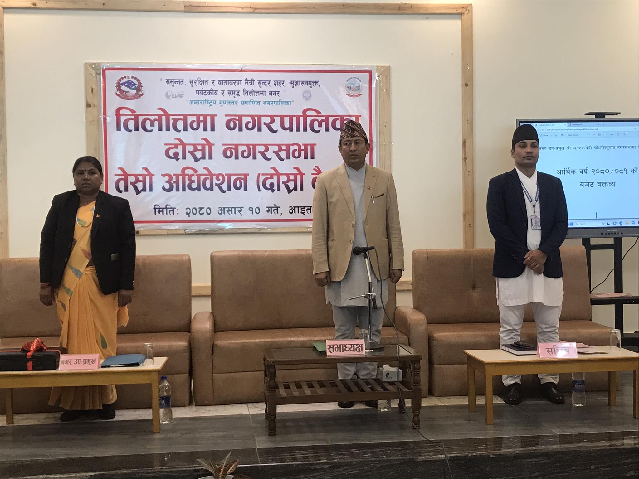 तिलोत्तमा । तिलोत्तमा नगरपालिकाले आगामी आर्थिक वर्षको लागि २ अर्ब ७३ करोड ८४ लाख ३९ हजार ५ सय २९ रुपैंयाँको बजेट सार्वजनिक गरेको छ । उप-प्रमुख जागेश्वर चौधरीले नगरसभाको तेस्रो अधिवेशनको दोस्रो बैठकमा आइतबार प्रस्तुत गरेको बजेटमा चालु खर्च १ अर्ब ६ करोड २४ लाख ५० हजार अर्थात् ३८ दशमलव ७९ प्रतिशत र पूँजीगत खर्च १ अर्ब ६७ करोड ५९ लाख ८९ हजार अर्थात् ६१ दशमलव २१ प्रतिशत अनुमान गरिएको छ ।