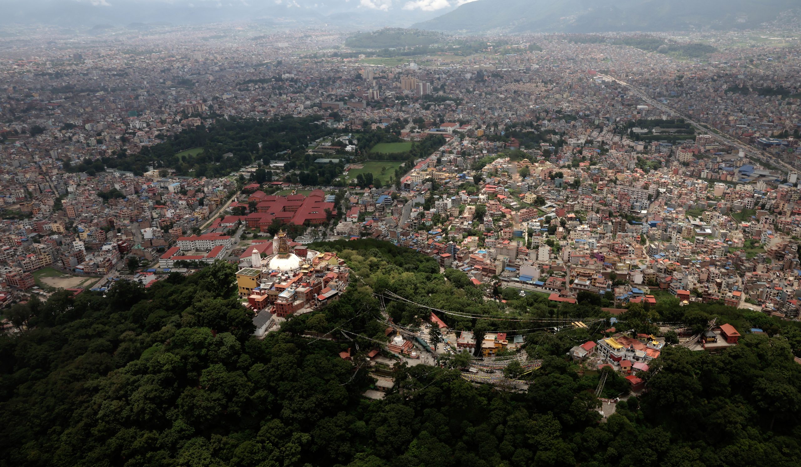 काठमाडौं । हवाइजहाजबाट सोमबार दिउँसो खिँचिएको काठमाडौंको स्वयम्भू, कलङ्की चक्रपथलगायत आसपासको सहरी क्षेत्र । तस्बिर : प्रदीपराज वन्त/रासस प्रकाशित मिति : ११ असार २०८०, सोमबार ४ : १४ बजे