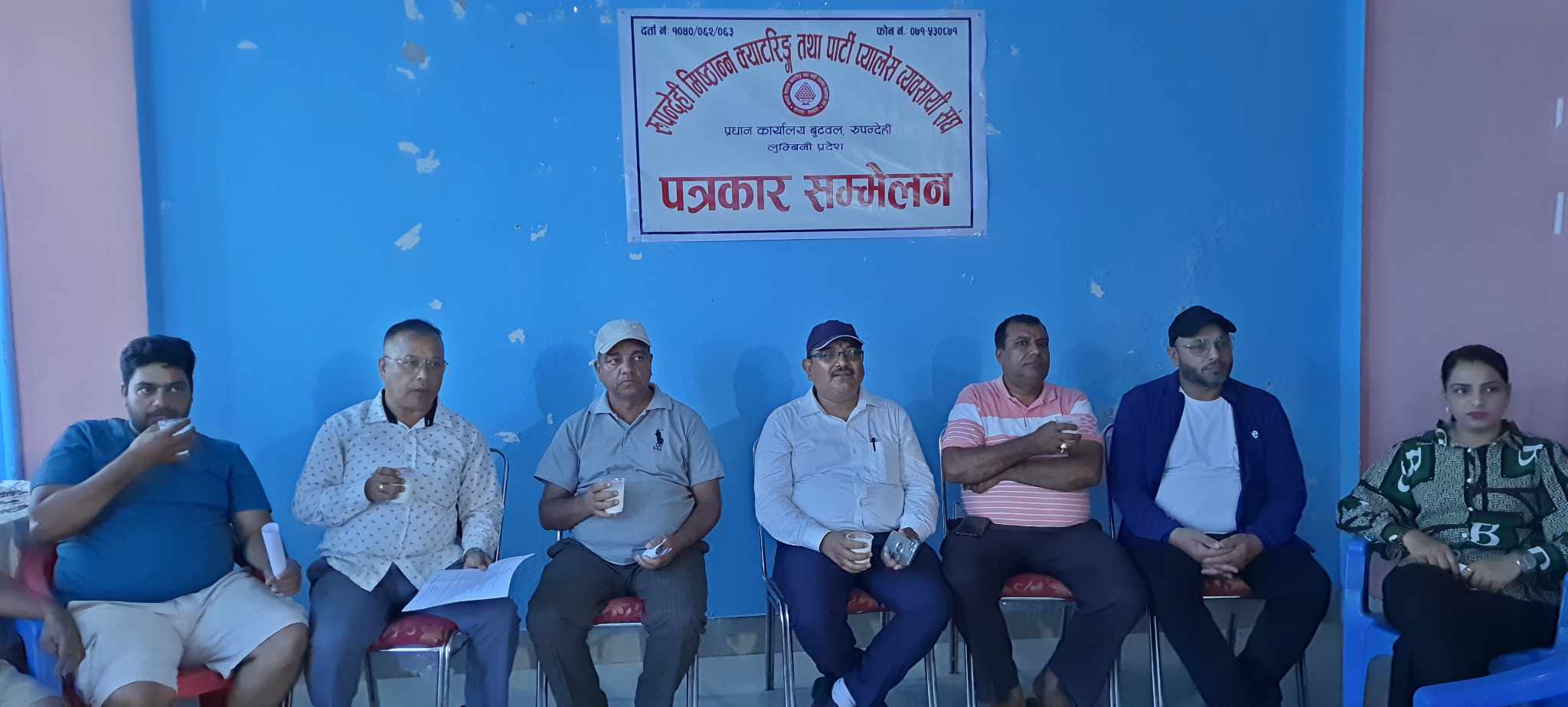 बुटवल । अनुगमनका नाममा व्यवसायीहरुलाई तर्साउने काम गरिएको भन्दै रुपन्देही मिष्ठान्न क्याटरिङ व्यवसायी तथा पार्टी प्यालेस संघले आपत्ती जनाएको छ । बुधबार बुटवलमा पत्रकार सम्मेलनको आयोजना गर्दै संघले बुटवल उपमहानगरपालिकाले गरेको अनुगमन प्रति ध्यानार्कषण भएको बताएको हो ।