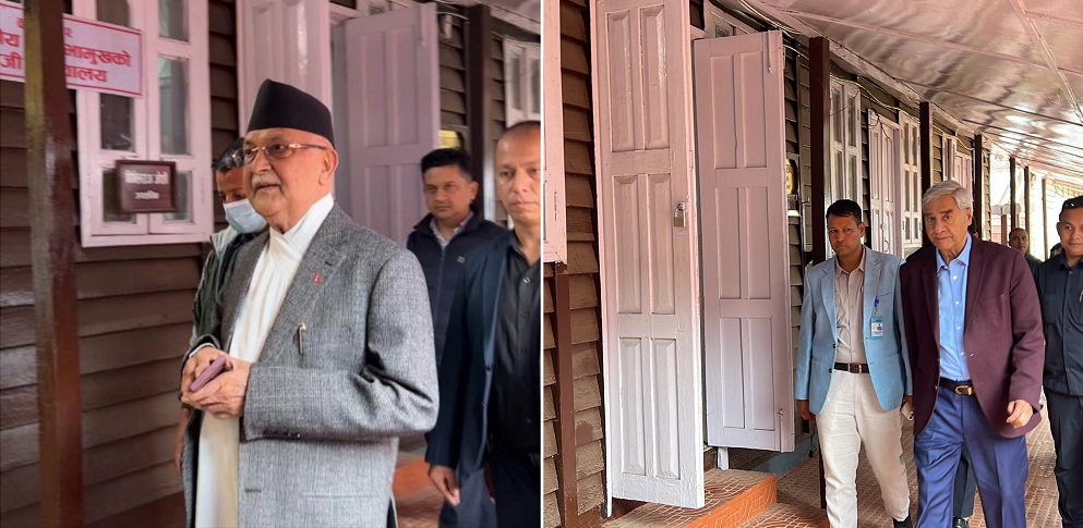 सोही बैठकमा सहभागी हुन पूर्वप्रधानमन्त्रीद्वय कांग्रेस सभापति शेरबहादुर देउवा र एमाले अध्यक्ष केपी शर्मा ओली सिंहदरबारस्थित संसद सचिवालयमा रहेको सभामुखको कार्यकक्ष पुगिसकेका छन् ।