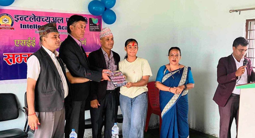 बुटवल । इन्टलेक्च्यूअल एकेडेमी बुटवल ११ कालिकानगरमा एसइई २०७९ मा उत्तिर्ण विद्यार्थीहरुलाई सम्मान गरिएको छ । मंगलबार आयोजित सम्मान कार्यक्रममा स्कुल व्यवस्थापन समितिका संस्थापक अध्यक्ष डा.कृष्ण खरेल, स्कुलका अध्यक्ष गोविन्द प्रसाद मरासिनी, संचालक रामराज पोख्रेलले विद्यार्थीहरुलाई सम्मान गरेका थिए ।