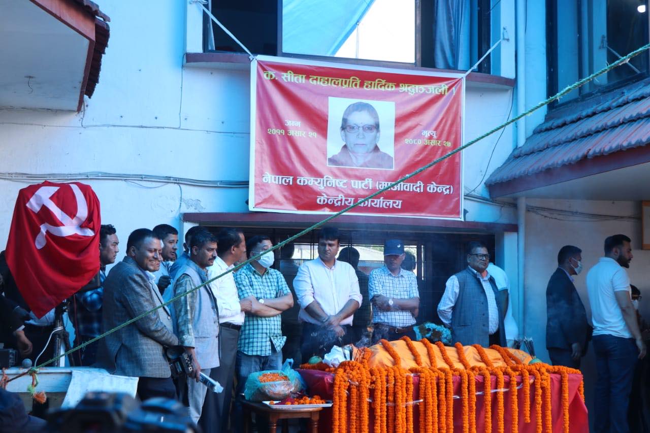 काठमाडौं । प्रधानमन्त्री पुष्पकमल दाहाल प्रचण्डकी जीवनसंगीनी एवं नेकपा माओवादी केन्द्रका सल्लाहकार सीता दाहालको निधनमा माओवादी केन्द्रीय कार्यालय पेरिसडाँडा शोकमा डुबेको छ ।