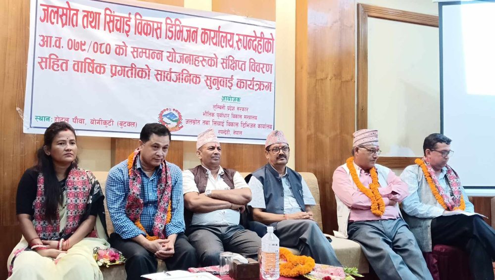सार्वजनिक सुनुवाईमा रुपन्देहीमा जलश्रोत तथा सिंचाई बिकास डिभिजन कार्यालय अन्तर्गत ७२ दशमलव ३९ प्रतिशत कार्यप्रगती हासिल गरेको प्रतिबेदन प्स्तुत गरिएको थियो । कार्यालयले चालुतर्फ ९४ दशमलव ४८ प्रतिशत र पुंजीगततर्फ ७१ दशमलव २८ प्रतिशत बजेट खर्च भएको जनाएको छ । आर्थिक बर्ष ०७९÷८० मा रुपन्देहीमा जलउत्पन्न प्रकोप नियन्त्रण र सिंचाई क्षेत्रको बिकासका योजना संचालनका लागि कुल बिनियोजित बजेट २५ करोड ६८ लाख ४१ हजारमध्ये १८ करोड ५९ लाख ५१ हजार रुपैयाँ खर्च गरेको कार्यालयले जनाएको छ ।