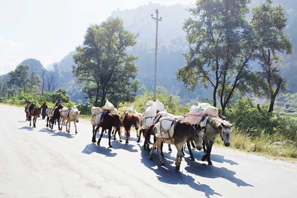 बर्खामा ढुवानी गर्न घोडा खच्चडकै भर