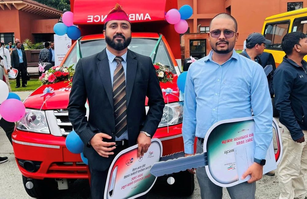 भारतीय राजदुताबासमा आज एक कार्यक्रमकाबीच अस्पताल विकास समितिका अध्यक्ष टेकेन्द्र मल्ल र अस्पतालका मेडिकल सुपरिटेन्डेन्ट डा. निरज भट्टराईलाई एम्बुलेन्स र बस हस्तान्तरण गरिएको छ । नेपाल सरकारका माननीय शिक्षा,विज्ञान तथा प्रविधी मन्त्री अशोक कुमार राई र नेपालका लागि भारतका राजदूत नवीन श्रीवास्तवको उपस्थितिमा १ थान एम्बुलेन्स तथा १ थान बस हस्तान्तरण गरिएको अस्पताल विकास समितिका अध्यक्ष टेकेन्द्र मल्लले जानकारी दिए।
