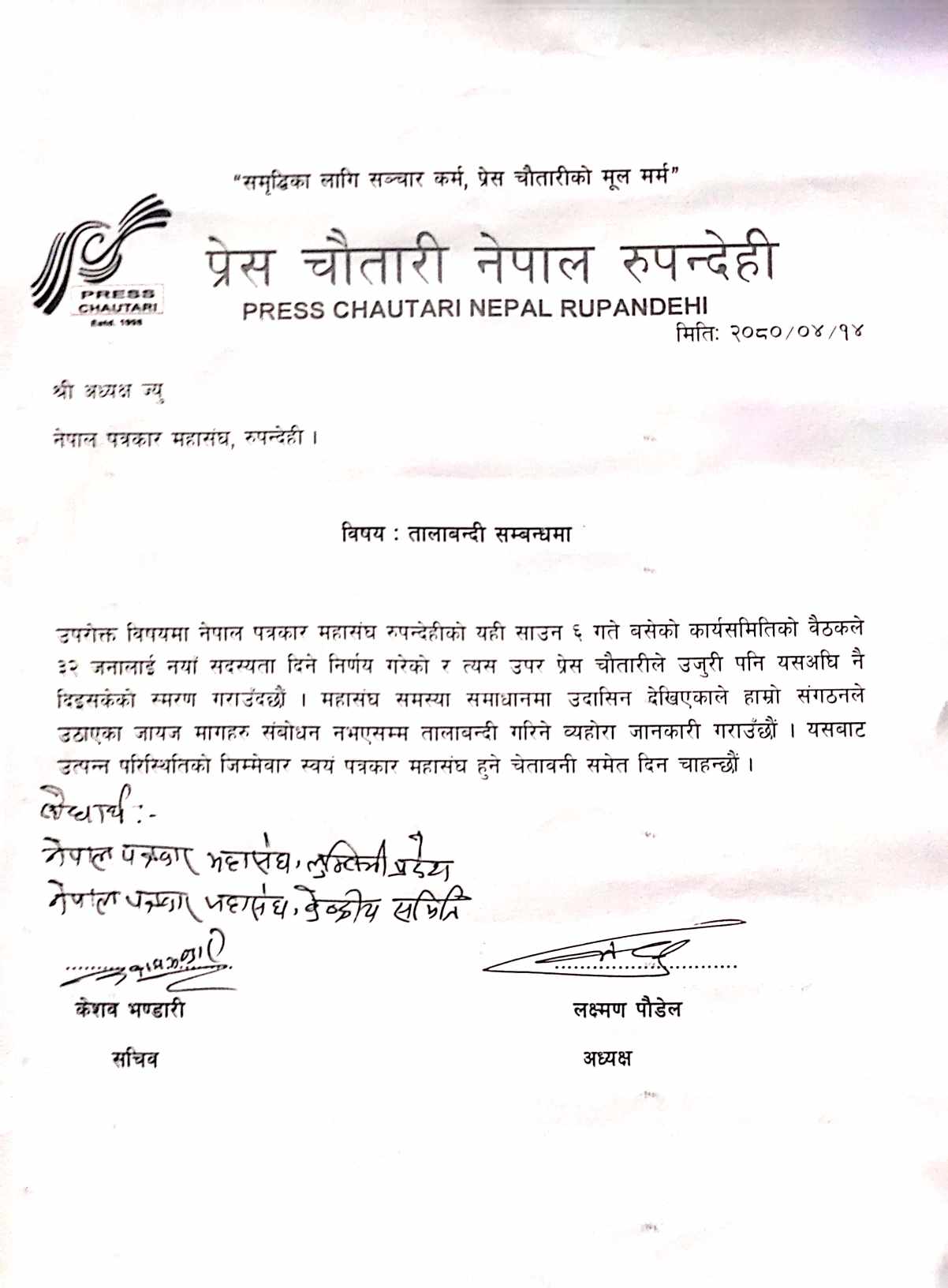 साथै प्रेस चौतारीले यसबाट उत्पन्न परिस्थितिको जिम्मेवार स्वयम् पत्रकार महासंघ नै हुने चेतावनी दिएको छ ।
