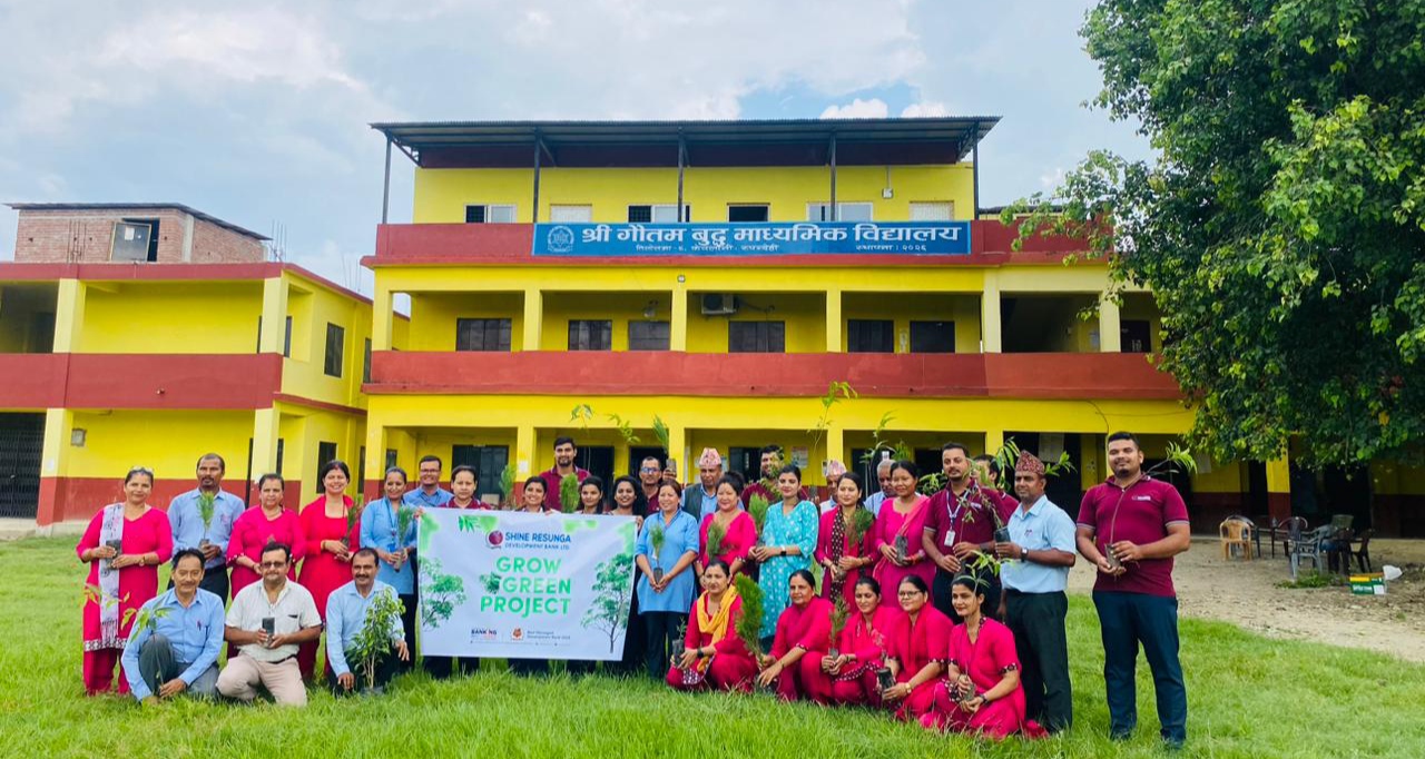 ‘शाइन ग्रो ग्रिन प्रोजेक्ट’ अन्तर्गत शाइन रेसुंगा डेभलपमेण्ट बैंक लि। मिड सेन्ट्रल सब क्लस्टर मंगलापुरले तिलोत्तमाको गौतमबुद्ध मा।बि। केवलानीमा बृक्षारोपण गरेको छ । बैंकले विद्यालय परिसरमा स्वामी, धुपी, गुल्मोहर, अशोका, कल्की प्रजातिका ८० बढी बिरुवाहरु रोपेको कलस्टर हेड विष्णु थापाले जानकारी गराए ।
