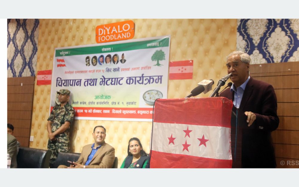 नेपाली कांग्रेस नुवाकोट क्षेत्र नं १ ले खीर खाने दिनको उपलक्ष्यमा आज यहाँ आयोजना गरेको ‘चियापान तथा भेटघाट’ कार्यक्रममा उनले अहिलेको आवश्यकता राष्ट्रिय एकता र राष्ट्रको सार्वभौम सत्ता भएको बताएका हुन् ।