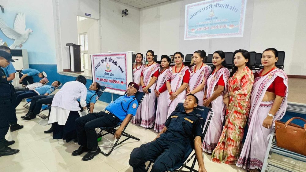 नेपाल प्रहरीको लुम्बिनी प्रदेश श्रीमती संघबाट बुटवलमा रक्तदान