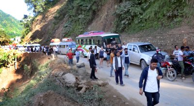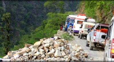 काठमाडौँ । अविरल वर्षाका कारण पहिरो जाँदा देशभरका नौ स्थानमा सडक अवरुद्ध भएका छन् । प्रहरी प्रधान कार्यालयका अनुसार अविरल वर्षाका कारण पहिरो जाँदा दार्चुला, सिन्धुपाल्चोक, मुगु, डडेल्धुरा, पाल्पा, रोल्पा र रूकुम (पूर्व) का विभिन्न नौ ठाउँमा सडक अवरुद्ध बनेका हुन् ।