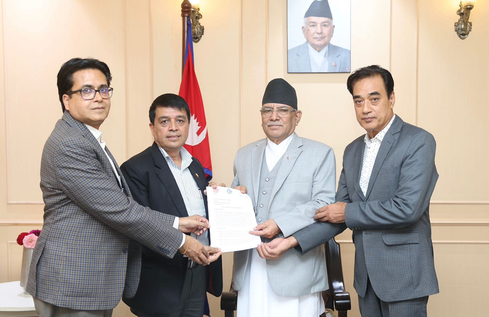 आज प्रधानमन्त्री पुष्पकमल दाहाल ‘प्रचण्ड’ ले निजी क्षेत्रका छाता संस्थाहरूसँग भेटघाट गरेका छन् । नेपाल उद्योग वाणिज्य महासङ्घ, नेपाल उद्योग परिसङ्घ, नेपाल चेम्बर अफ कमर्सलगायतका निकायका प्रतिनिधि बोलाएर प्रधानमन्त्री दाहालले छलफल गरेका हुन् । निजी क्षेत्रले प्रधानमन्त्री प्रचण्डसँगको भेटमा अर्थतन्त्र सुधारका लागि निजी क्षेत्रको खस्केको मनोबल उकास्नु पहिलो काम रहेको सुझाव दिएका छन् ।