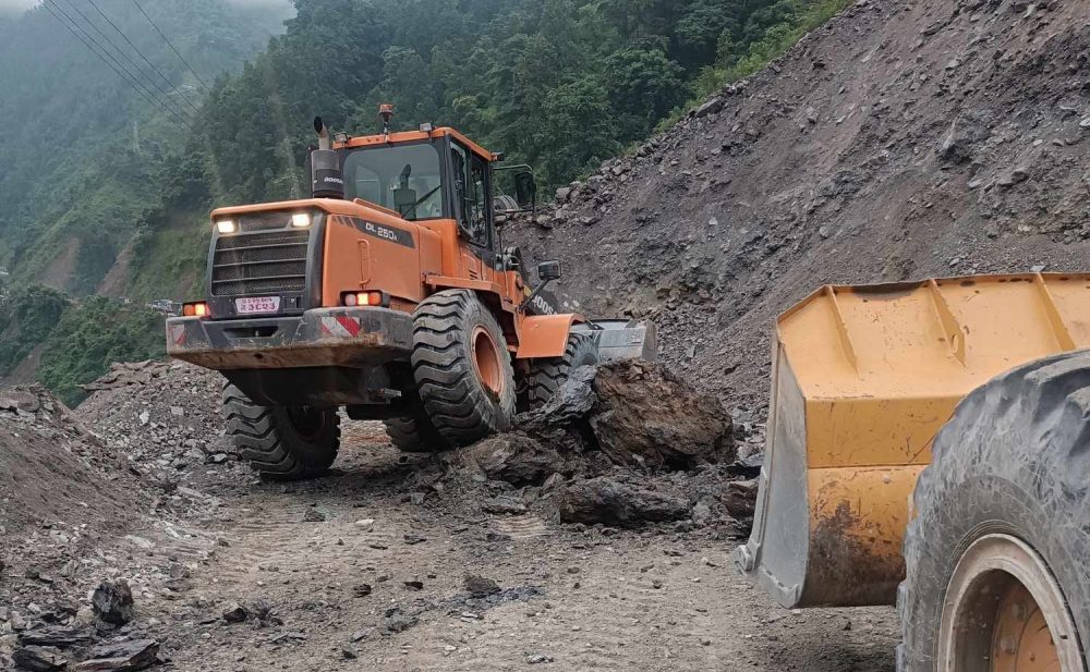 मुग्लिन-नारायणगढ सडक : पहिरो पन्छाउँदै गरेको लोडरमा ढुँगा खसेर क्षति