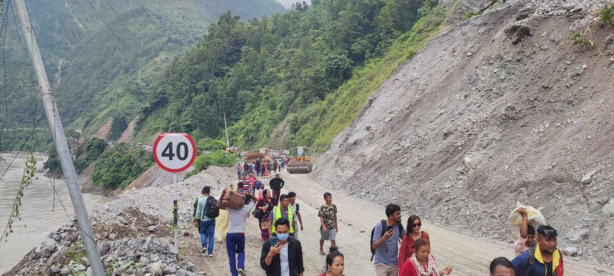 चितवन । मुग्लिन-नारायणगढ सडक खण्डमा सोमबार राती ८ बजेबाट अवरुद्ध सडक १७ घण्टापछि संचालनमा आएको छ । सडक डिभिजन कार्यालय भरतपुरको सक्रियतामा ३ वटा स्काभेटर प्रयोग गरि १२ः५५ बजेबाट सडक सुचारु भएको हो ।