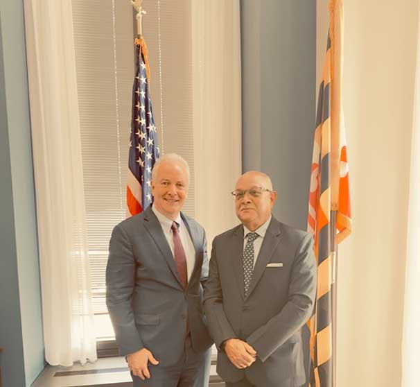 वासिङ्गटन डिसी । अमेरिकी उपल्लो सदनका सिनेटर क्रिसभ्यान होलानसँग अमेरिकाका लागि नेपालका राजदूत श्रीधर खत्रीले क्यापिटल हिलमा भेटघाट गरेका छन ।