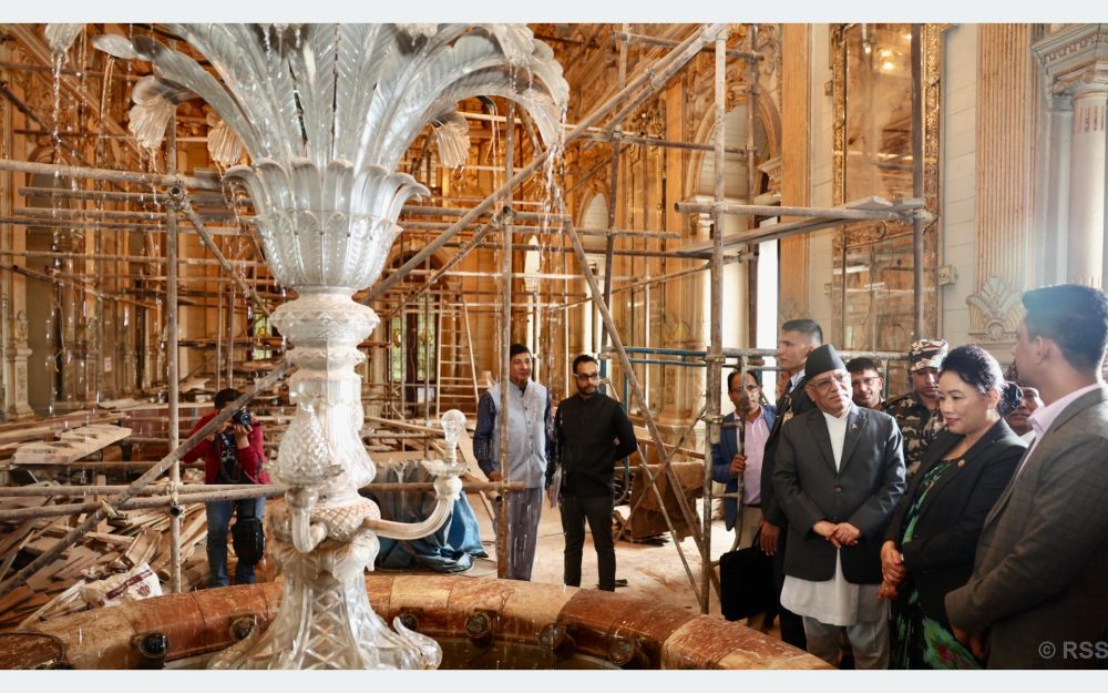 आज दिउँसो उनले निर्माणमा संलग्न कम्पनीसँग छलफल गर्दै पुनःनिर्माण सम्पन्नपश्चात देखिने बाहिरी र भित्री कक्षको ‘थ्रिडी एनिमेसन’को अवलोकन पनि गरेका थिए ।