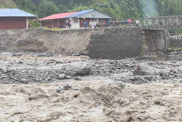 सिन्धुपाल्चोक । अविरल वर्षासँगै आएको बाढी र पहिरोले सिन्धुपाल्चोकको जनजीवन प्रभावित भएको छ । मेलम्ची नदीमा आएको बाढीका कारण हेलम्बु गाउँपालिका-४ ग्याल्थुमको सरस्वती माध्यमिक विद्यालयको भवन शुक्रबार साँझ बगाएको स्थानीय श्याम शर्माले जानकारी दिए । अन्य भवन पनि जोखिममा रहेका छन् । त्यस्तै ग्याल्थुम बजार पनि जोखिममा परेको छ ।