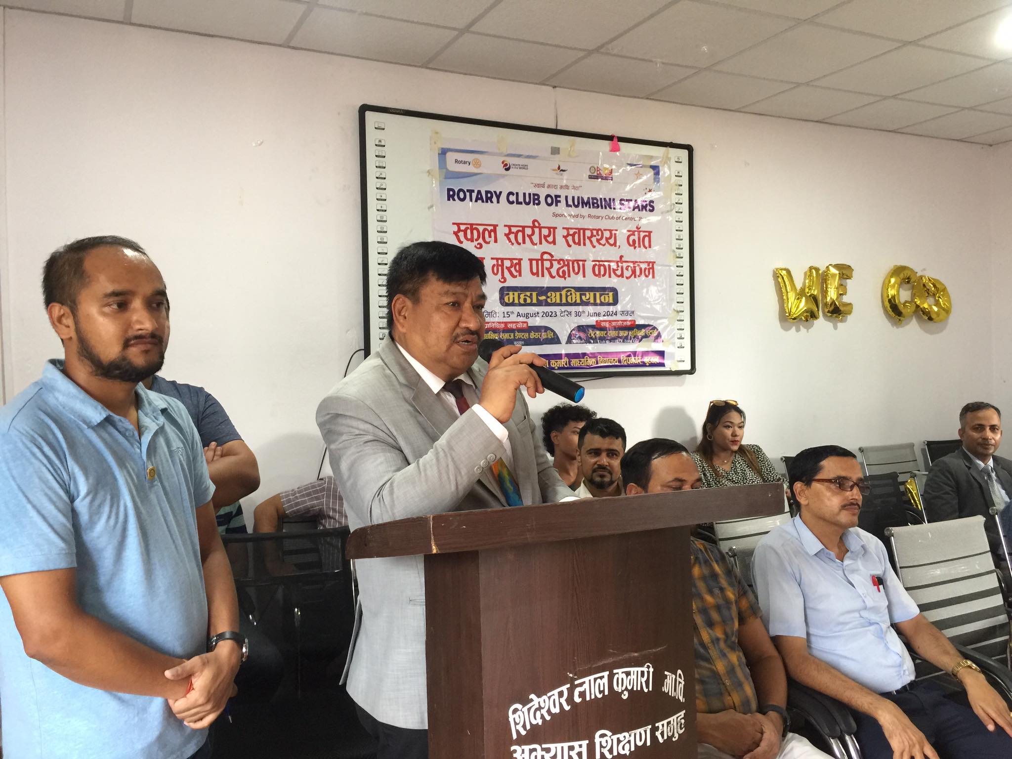 रोटरी क्लब अफ लुम्बिनी स्टार्स वर्ष २०२३/२४ का अध्यक्ष ध्रुव कोइरालाको अध्यक्षता, सचिव विमल ढकालको सञ्चालन तथा शिवीरको सहयोगी संस्था आधुनिक समाज डेण्टल केयर प्रा.लि., बुटवल ८ का सञ्चालक अमृत भुसालको स्वागतमा भएको कार्यक्रममा रोट्याक क्लब अफ लुम्बिनी स्टार्सका अध्यक्ष जया भण्डारी, सिद्धेश्वर लालकुमारी माध्यामिक विद्यालयका सहप्राचार्य दिपक पौडेल लगायत बोलेका थिए ।