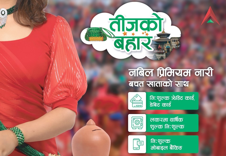 काठमाडौं । नजिकिँदै गरेको नारीहरूको चाड तीजलाई लक्षित गर्दै नबिल बैंकले आफ्ना महिला ग्राहकका लागि विशेष तीज अफर बजारमा ल्याएको छ ।