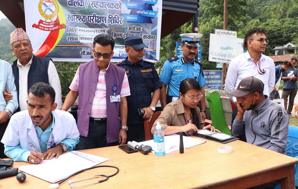 धादिङ । राजमार्गमा हुने दुर्घटना न्यूनीकरण गर्न जिल्ला ट्राफिक प्रहरी कार्यालय धादिङले चालक तथा सहचालकको स्वास्थ्य परीक्षण अभियान सुरुआत गरेको छ । अधिकांश दुर्घटना चालककै कमजोरीका कारण भएकाले सवारी चलाइरहेका चालकलाई सडकमै रोकेर स्वास्थ्य परीक्षण गर्ने अभियान थालिएको हो ।