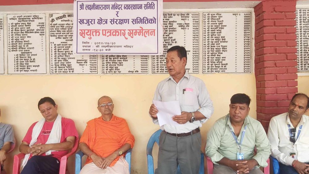 क्षेत्र संरक्षण समितिले आज पत्रकार सम्मेलन गरेर तीज महोत्सवको तयारी तिब्र पारिएको जनाएको छ । २२ वर्ष पहिले खजुरा क्षेत्र संरक्षण समितिले थालेको तीज महोत्सवको निरन्तरताकारुपमा यसवर्ष महोत्सव आयोजना गरिएको समितिका अध्यक्ष प्रेम बुढाथोकीले बताए । उनले तीज महोत्सव खजुराको एउटा गहना बनिसकेको उल्लेख गर्दै बाँके र बर्दियाका अवलोकन कर्ता तथा ब्रतालु दिदीबहिनीहरुको खजुरामा पुजा गर्न आउने र तीजि गीतमा रमाउने परम्परा जस्तै बनेको बताए ।