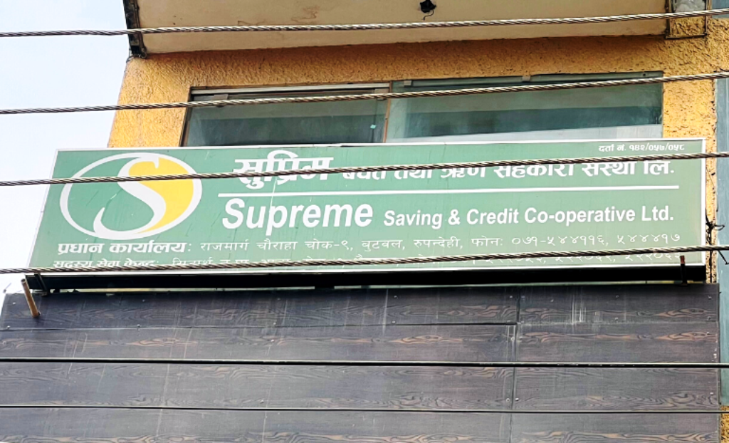 लुम्बिनी । बुटवलमा रहेको सुप्रिम बचत तथा ऋण सहकारी संस्था लिमिटेडले बचत रकम फिर्ता नगरेको भन्दै कारबाहीको लागि लुम्बिनी प्रदेश सहकारी दर्ता अधिकारीको कार्यालयमा आज उजुरी परेको छ ।