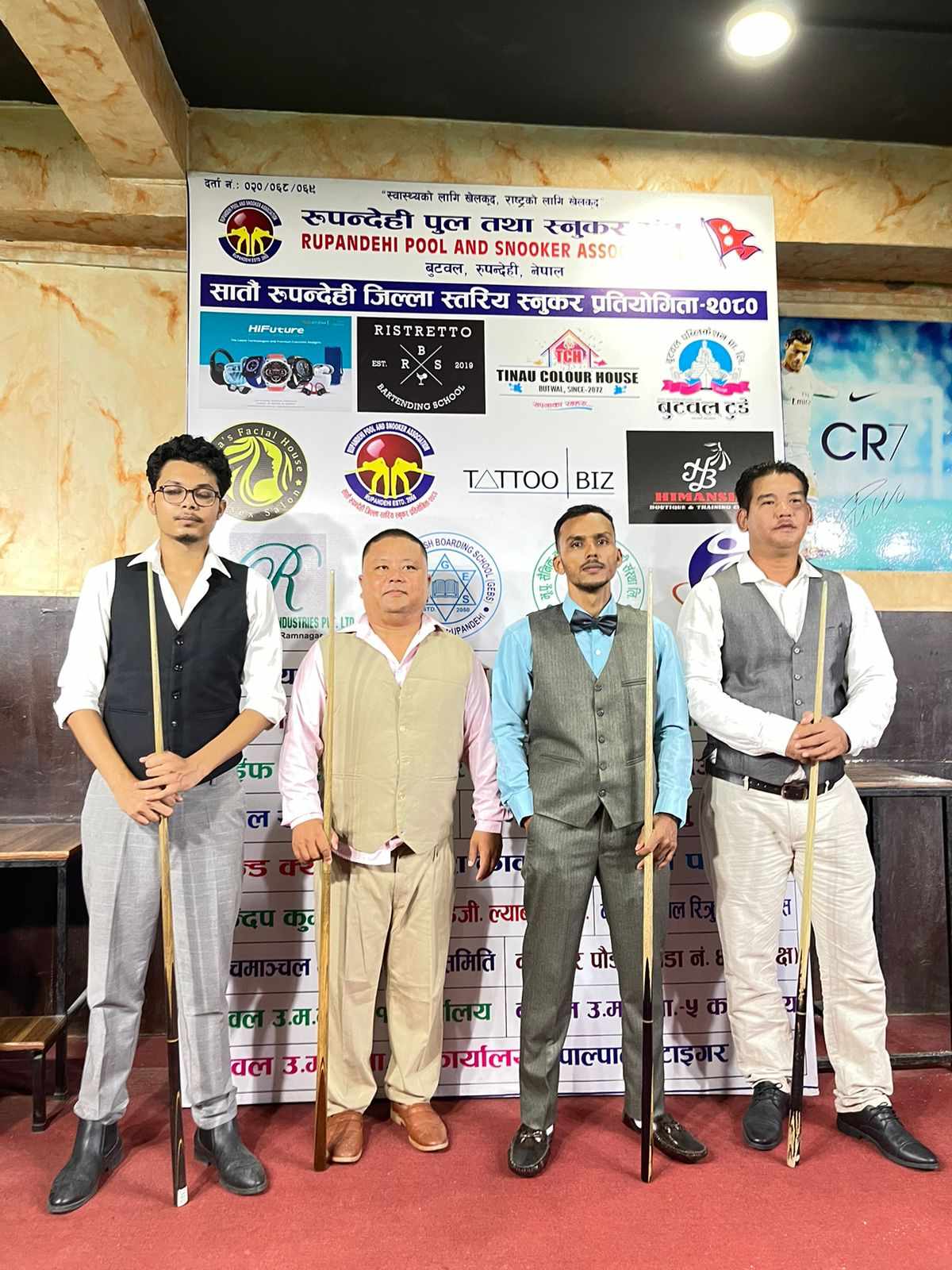 रुपन्देही पुल तथा स्नुकर संघको आयोजनामा खस्यौली स्नुकर क्लब बुटवलमा बुधबार सम्पन्न खेलमा विजयी हुंदै शिशिर गुरुङ,शंकर खड्का,विजय थापा र सम्बन्ध विक सेमिफाइन प्रवेश गरेका हुन् ।