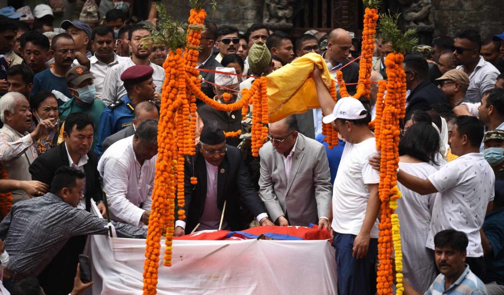 नेम्वाङ पार्थीव शरीरमा राष्ट्रिय झन्डा ओढाएर प्रधानमन्त्रीद्वारा सम्मान व्यक्त
