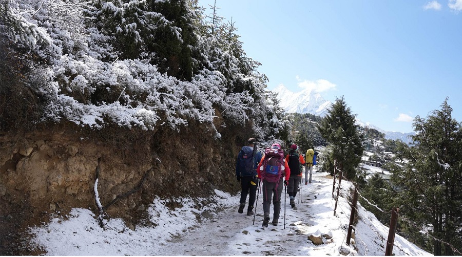 The four-member team of trekkers is led by Maria Andre from Slovenia.The team started the trekking from Taplejung district for Ghunsa, said local people. The Great Himalayan Trail is a trekking route that goes through various mountainous areas within Nepal covering a distance of around 1,700 kilometres and passes through eight mountains. It is becoming one of the best, ambitious and challenging treks for tourists at home and abroad. It expands from Taplejung district to Darchula district.