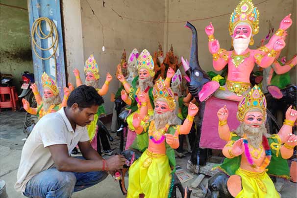 इनरुवा । विश्वकर्मा पूजा आउन तीन दिनमात्र बाँकी रहेका बेलामा विश्वकर्माको मूर्ति बनाउन कलाकारलाई भ्याइनभ्याइ भएको छ ।