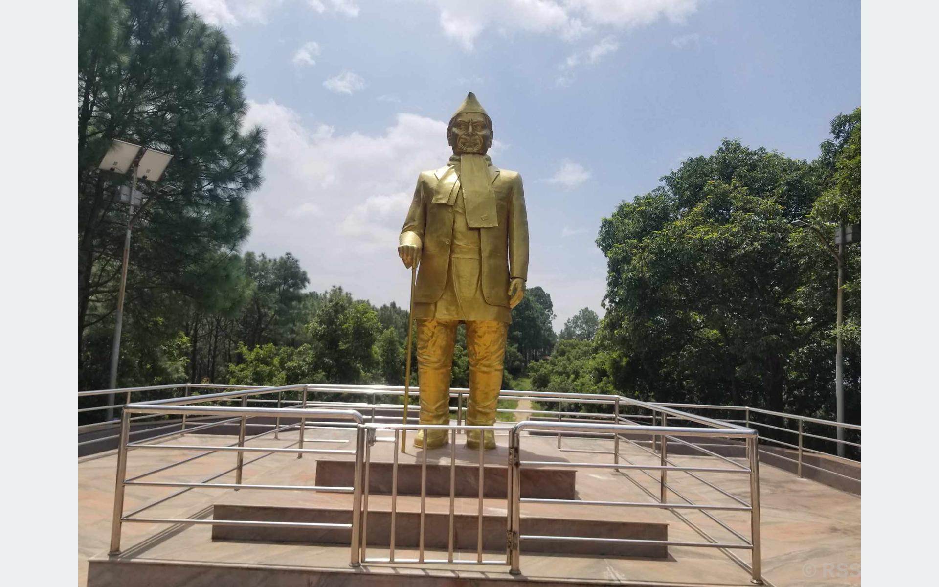 भक्तपुर । सूर्यविनायक नगरपालिका–५ कटुञ्जेस्थित सुवर्णेश्वर महादेव मन्दिर क्षेत्रमा रहेको जङ्गलको पूर्वपट्टिको छेउमा सुन्दर बगैँचासहितको बाटिका छ । नजिकै सानो पालेघर । वाटिकाको बीचमा २३ वर्षदेखि लौरो टेकेर ठिङ्ग उभिरहेका लौह पुरुष, प्रजातन्त्र सेनानी स्व गणेशमान सिंहको पूर्णकदको सालिक । हो यही सालिक आज स्व सिंहको पुण्यतिथि एवं २६औँ स्मृति दिवसका अवसरमा राष्ट्रपति अनावरण गर्ने भएपछि बल्ल ठडिएको सालिकले पूर्णता पाउने भएको छ ।