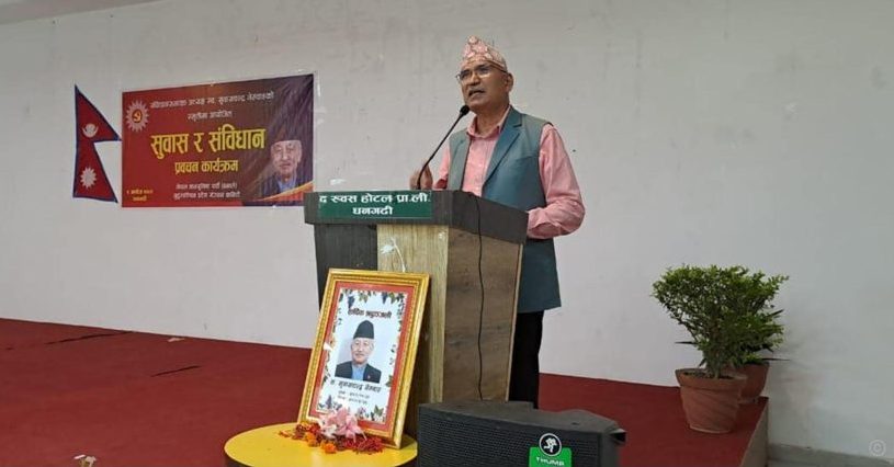 धनगढी । नेकपा (एमाले) का उपाध्यक्ष एवं पूर्वउपप्रधानमन्त्री विष्णुप्रसाद पौडेलले नेपालको संविधानको रक्षा र यसको सार्थक कार्यान्वयनका पक्षमा काम गर्नुपर्नेमा जोड दिएका छन् ।