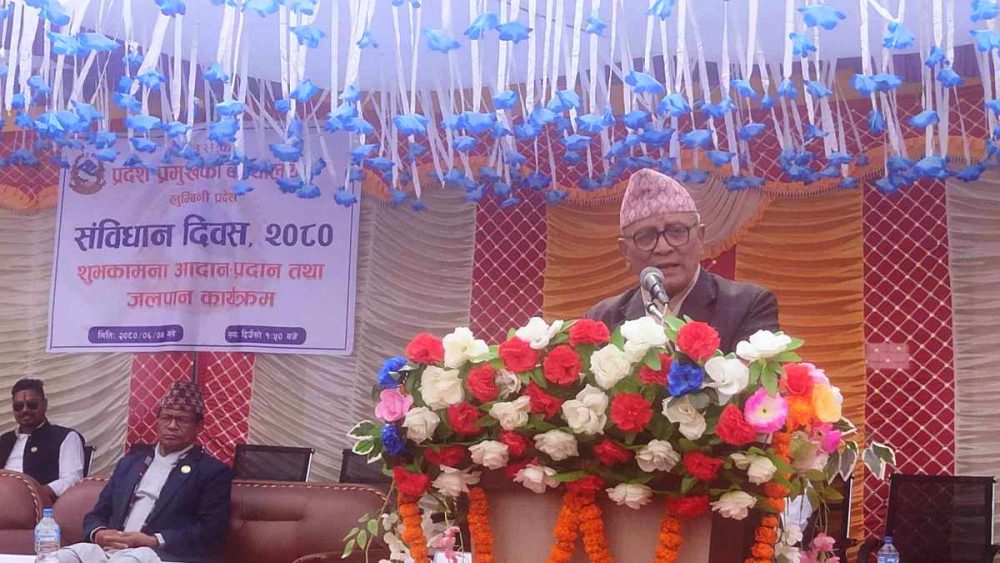 बुटवल । लुम्बिनी प्रदेशका प्रदेश प्रमुख अमिक शेरचनले प्रदेशले जनचाहाना अनुसारको काम गर्न सके प्रदेश माथि प्रश्न नउठ्ने बताएका छन् । संबिधान दिवसको अवसरमा प्रदेश प्रमुखको सचिवालयले आयोजना गरेको शुभकामना आदानप्रदान तथा जलपान कार्यक्रमलाई सम्बोधन गर्दै प्रदेश प्रमुख शेरचनले प्रदेशले देखिने गरी काम गर्न नसक्दा प्रदेश माथि प्रश्न उठ्ने गरेको बताए ।