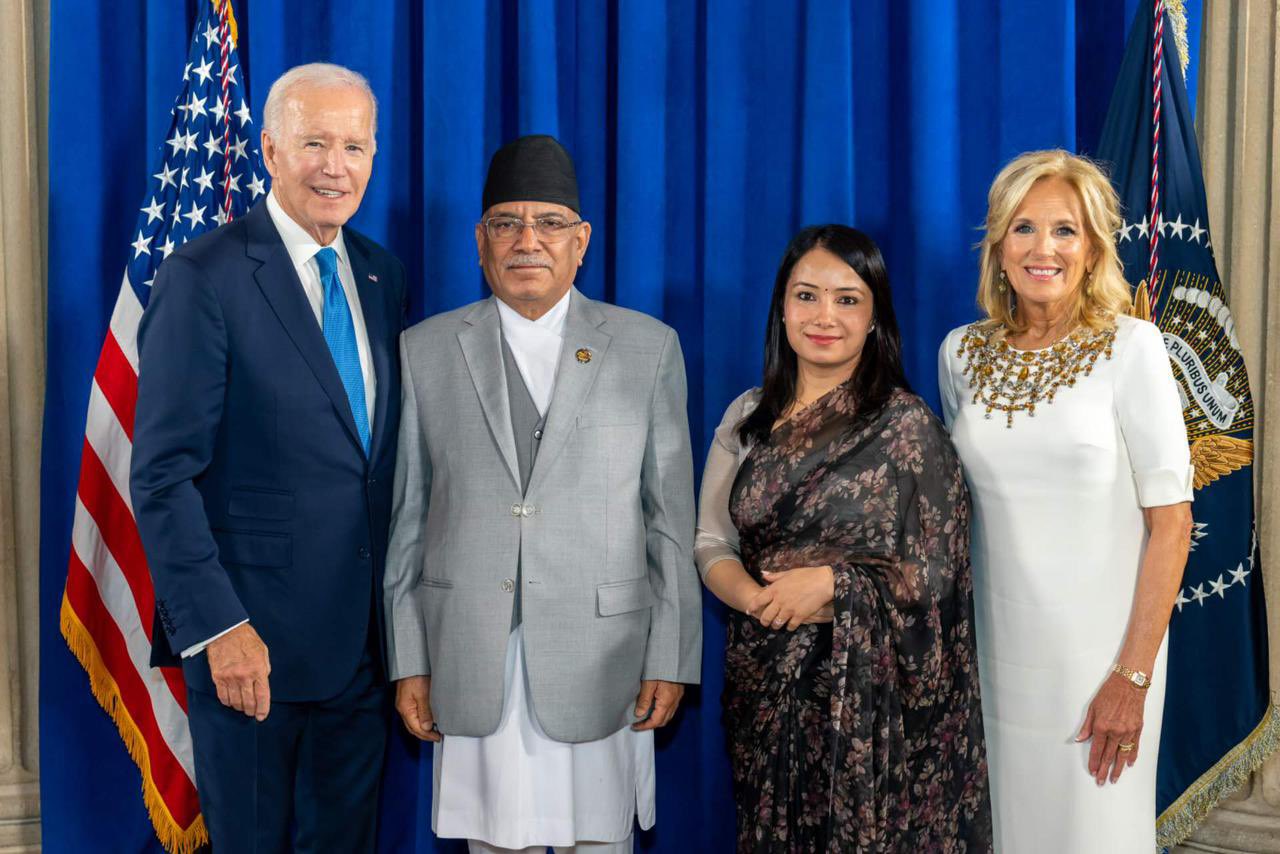 भेटमा राष्ट्रपति बाइडेनकी श्रीमती जिल ज्याकोब र प्रधानमन्त्रीकी छोरी गङ्गा दाहाल सहभागी थिए। राष्ट्रपतिसँग भेट हुँदा प्रधानमन्त्री दाहालले नेपाली पोशाक दौरा सुरुवाल र भादगाउँले टोपी लगाएका थिए ।