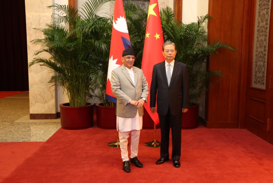 बेइजिङ । प्रधानमन्त्री पुष्पकमल दाहाल ‘प्रचण्ड’ र चिनियाँ पिपुल आफ कंग्रेसका स्थानीय समिति अध्यक्ष चाओ लिजीबीच भेटवार्ता भएको छ । उनीहरुबीच यहाँको ग्रेटहल अफ दि पिपलमा भेटवार्ता भएको हो । सो अवसरमा परराष्ट्रमन्त्री एनपी साउदसहित नेपाली प्रतिनिधिमण्डलका सदस्यहरूको सहभागिता रहेको थियो ।