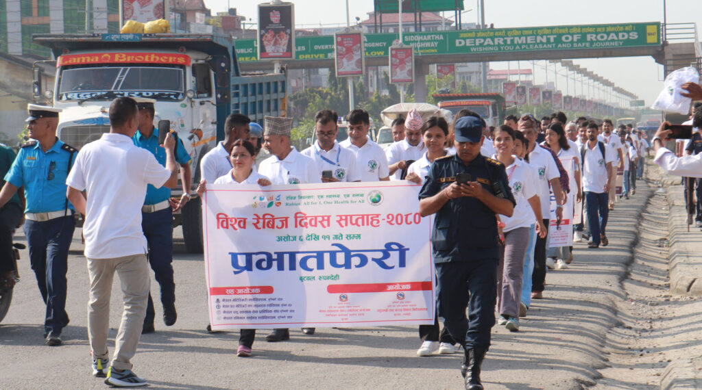 बुटवल । प्रत्येक बर्ष सेप्टेम्बर २८ तारिखलाई संसारभर विश्व रेबिज दिवसको रूपमा मनाईन्छ । सोही अनुसार बुटवलमा प्रदेशको पशुपंक्षि तथा मत्स्य विकास निर्देशनालय र नेपाल लाईभस्टक सेक्टर ईनोभेसन आयोजना बुटवलमो मुख्य आयोजना र अन्य निकायको सहकार्यमा प्रभातफेरी तथा अन्तरक्रिया कार्यक्रम गरिएको छ ।