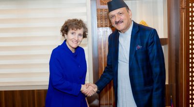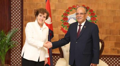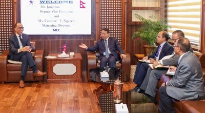 काठमाडौं । अर्थमन्त्री डा प्रकाशशरण महत र अमेरिकी सहयोग परियोजना एमसिसीका प्रमुख कार्यकारी अधिकृत (सीईओ) एलिस अल्ब्राइटको नेतृत्वमा आएको प्रतिनिधिमण्डलबीच शिष्टाचार भेटघाट भएको छ ।