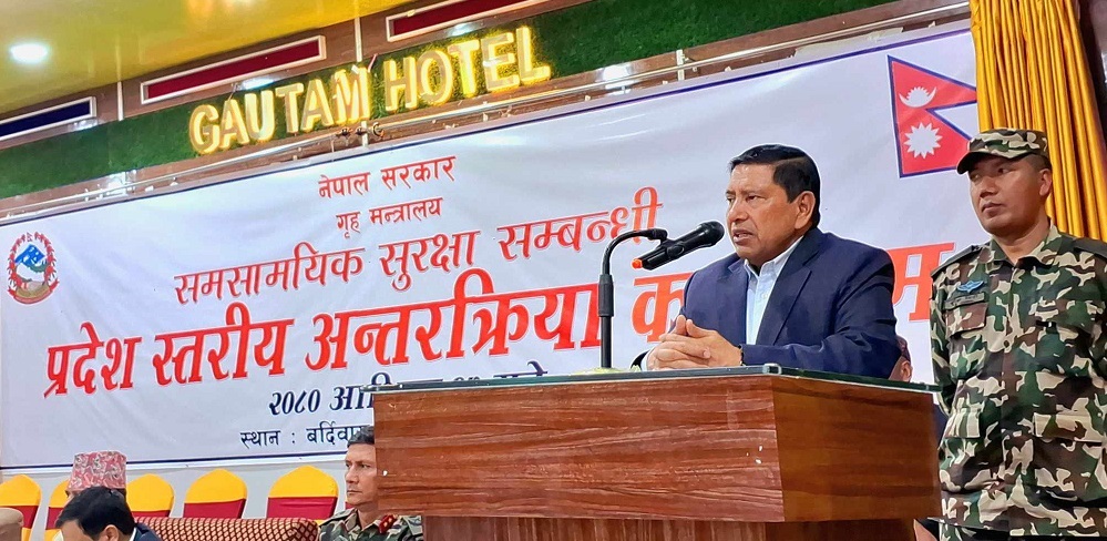गृह मन्त्रालयका सचिव दिनेश भट्टराईको अध्यक्षतामा सम्पन्न अन्तरक्रियात्मक बैठकमा प्रदेश सरकारका मुख्यसचिव दिनेश घिमिरे, नेपाल प्रहरीका महानिरीक्षक बसन्तबहादुर कुँवर, सशस्त्र प्रहरीका महानिरीक्षक राजु अर्याल र राष्ट्रिय अनुसन्धान विभागका निमित्त प्रमुख ओमप्रकाश जोशीले समेत बोलेका थिए । कार्यक्रममा गृह मन्त्रालयका प्रवक्ता नारायण भट्टराई, नेपाली सेनाका मध्यपूर्वी पृतनापति उपरथि प्रेमध्वज अधिकारी लगायतका व्यक्तित्वहरू सहभागी थिए ।