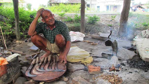 “हातमा सीप भनेको त्यही परम्परागत आरन चलाउनुमात्रै हो”, उनले भने, “यसबाट आएको रकम र अन्नले सात जनाको परिवारको पेट पाल्न मुस्किलले पुगेको छ”, रातदिन फलाम थिच्दा पनि मुस्किलले दुई छाक खान नपुग्ने गरेको उनको दुःखेसो छ ।